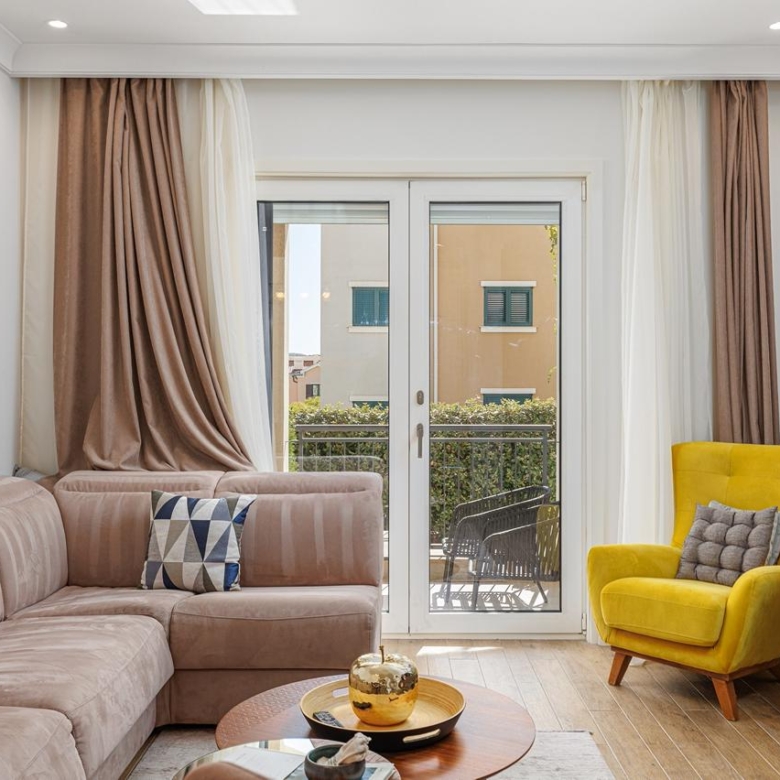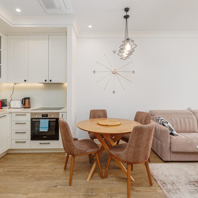 The apartment boasts a bright, modern internal layout designed for maximum comfort and style. Its ground-floor position ensures effortless access to the entire infrastructure of the area, placing all shops, cafes, and essential services within a short walking distance.