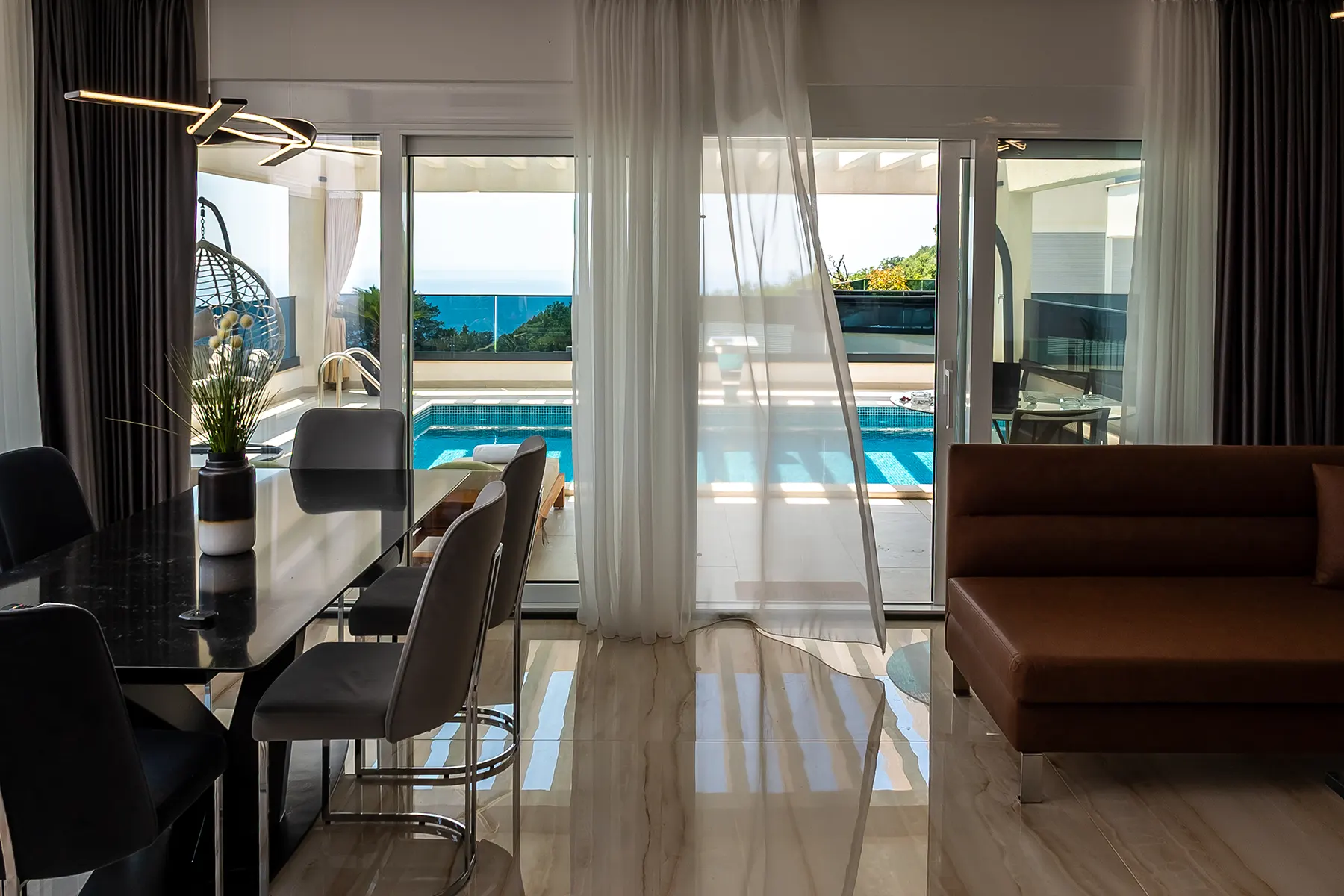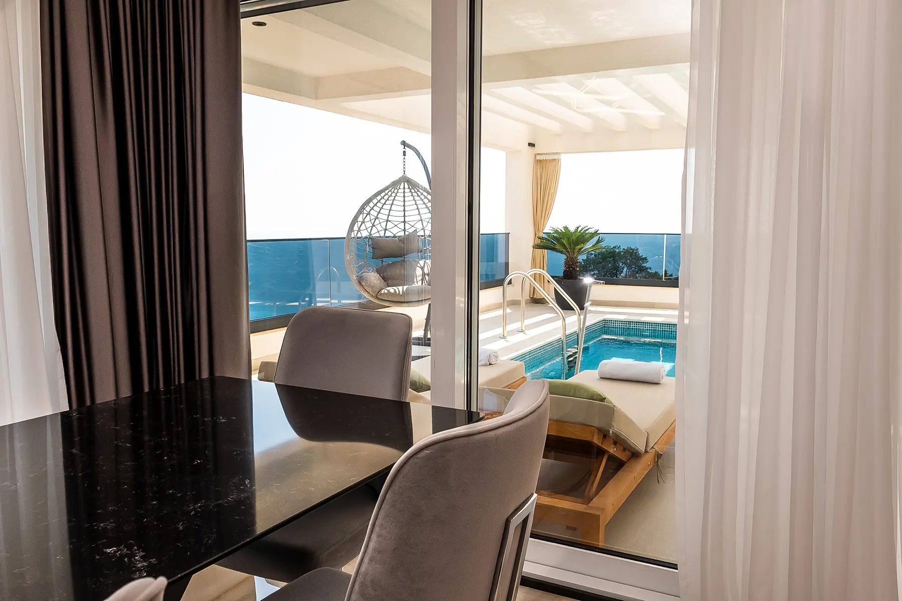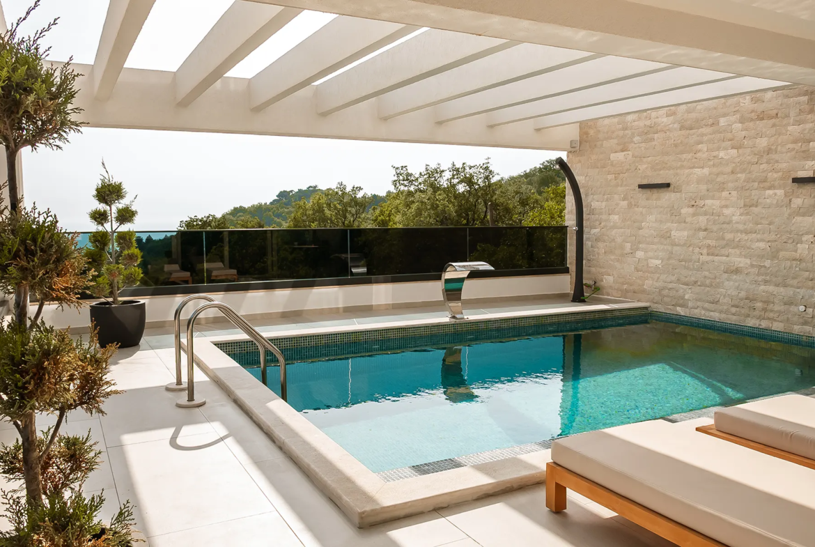 sea and the pool. With a pool and large terrace providing 79m2 of outdoor living.