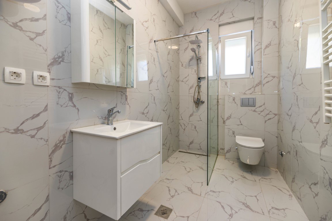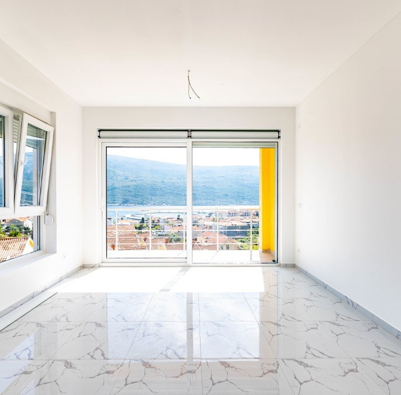 Discover this newly built two-bedroom apartment offering 69.5 m² of comfortable living space in a modern residential building in Djenovici. Located just 450 meters from the sea and Porto Novi — a scenic 7-minute walk — this home combines modern comfort with panoramic beauty.