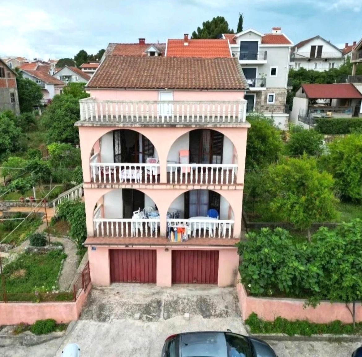 Location: Radovići, Tivat Municipality, Type: House, Size: 4 floors, 366m² (BRGP), Urban Plot Size: 457m², Build Index: 0.8. Terraces: Each apartment has a private terrace. Courtyard: The property includes a courtyard for additional outdoor space.Renovation Potential: It is in need of renovation, offering a chance to customize it to your liking.Details